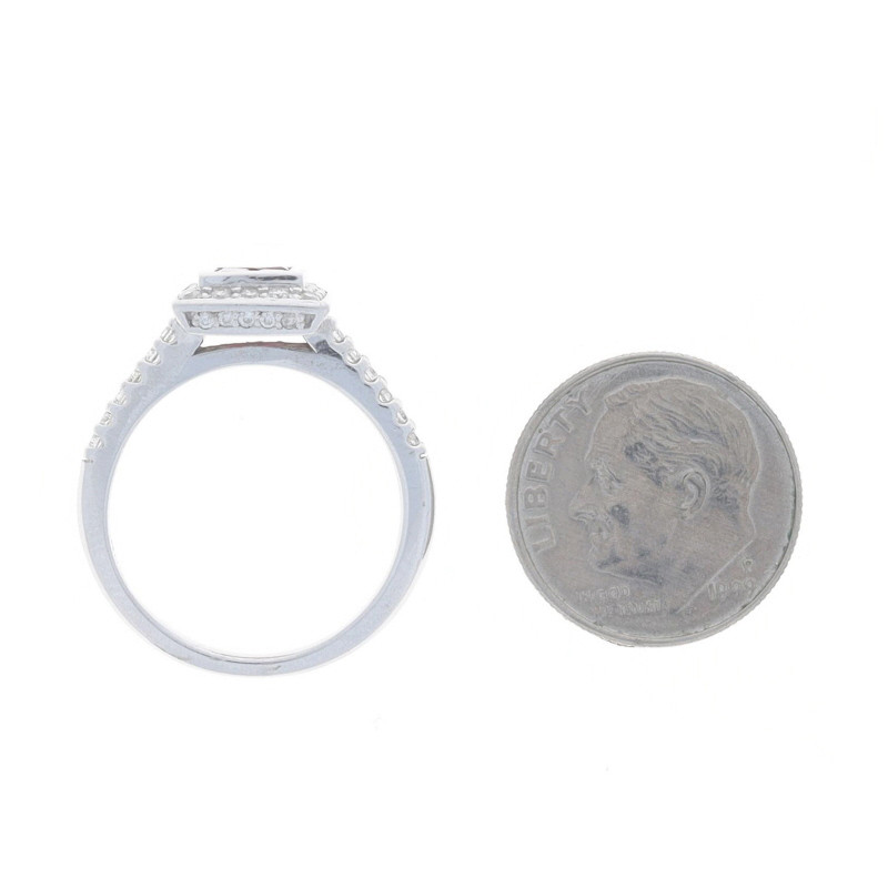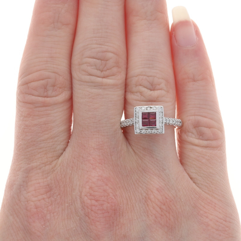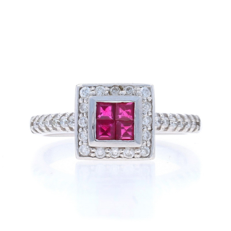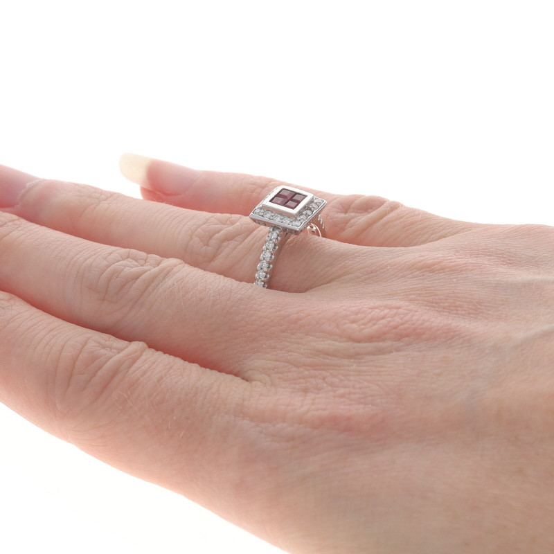 White Gold Ruby Diamond Cluster Halo Ring - 14k Square .74ctw Engagement