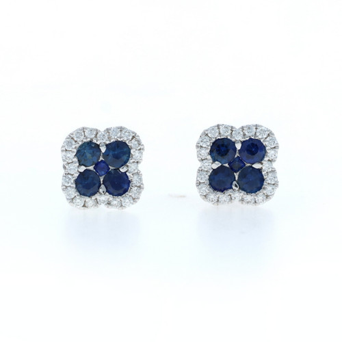 White Gold Sapphire Diamond Cluster Halo Stud Earrings -14k Rd .82ctw Quatrefoil