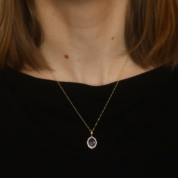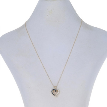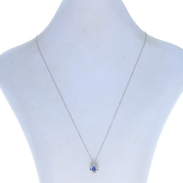 White Gold Sapphire Diamond Drop Pendant Necklace 15 3/4" - 14k Oval .75ctw