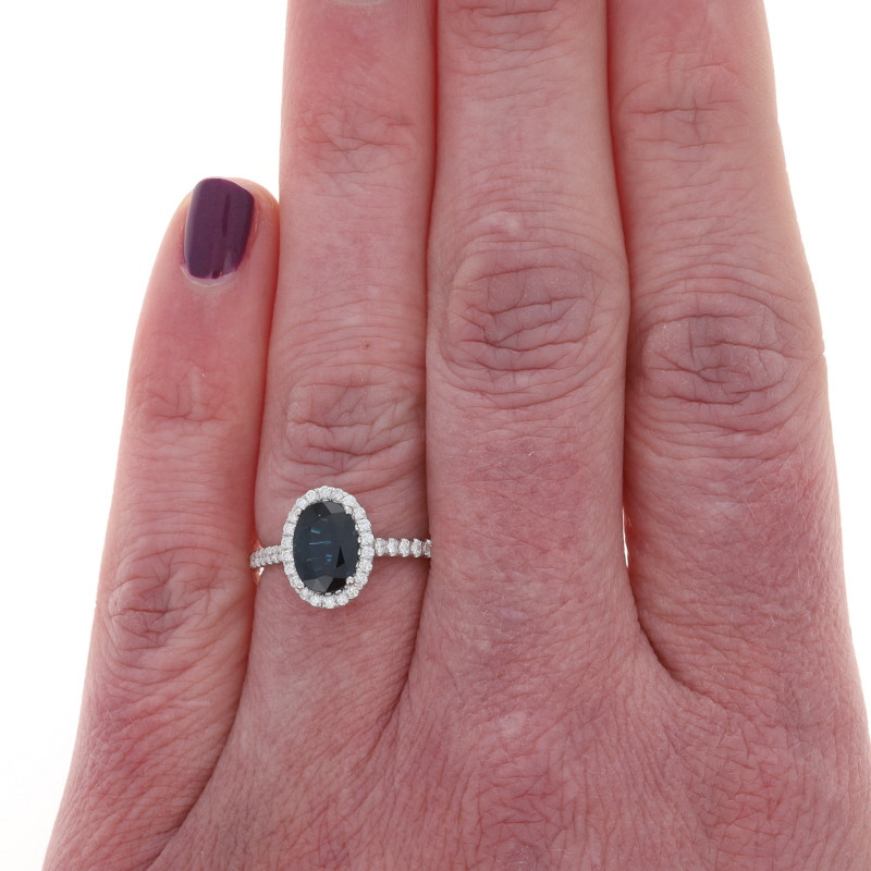 White Gold Sapphire Diamond Halo Engagement Ring - 14k Oval 1.81ctw
