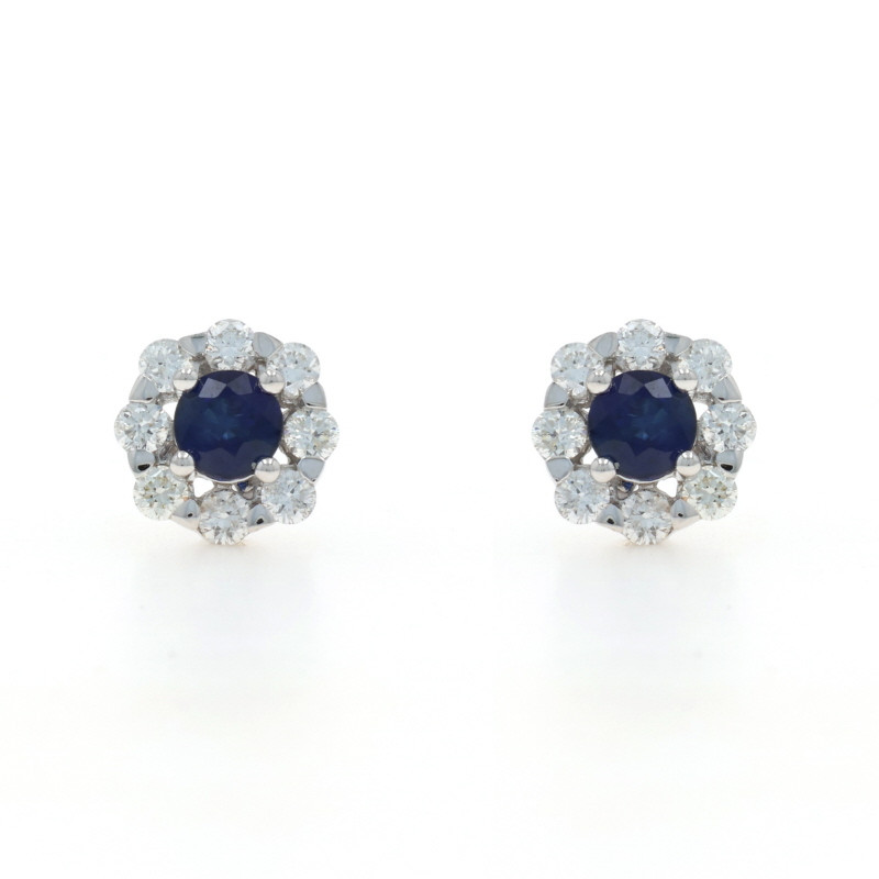 White Gold Sapphire Diamond Halo Stud Earrings - 14k Round 1.26ctw Pierced