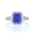 White Gold Tanzanite Diamond Halo Ring - 18k Emerald Cut 3.51ctw
