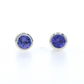 White Gold Tanzanite Stud Earrings - 18k Round .90ctw Pierced Screw-Ons