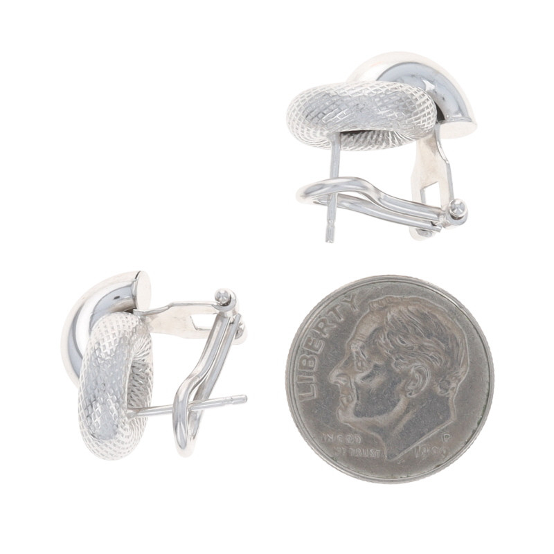 White Gold Textured Short Drop Earrings - 14k Doorknocker-Inspired Pierced