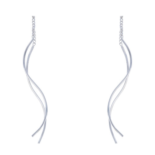 White Gold Wavy Threader Dangle Earrings 14k Minimalist Pierced