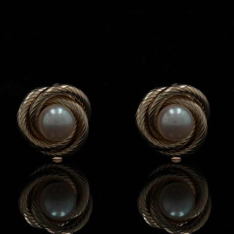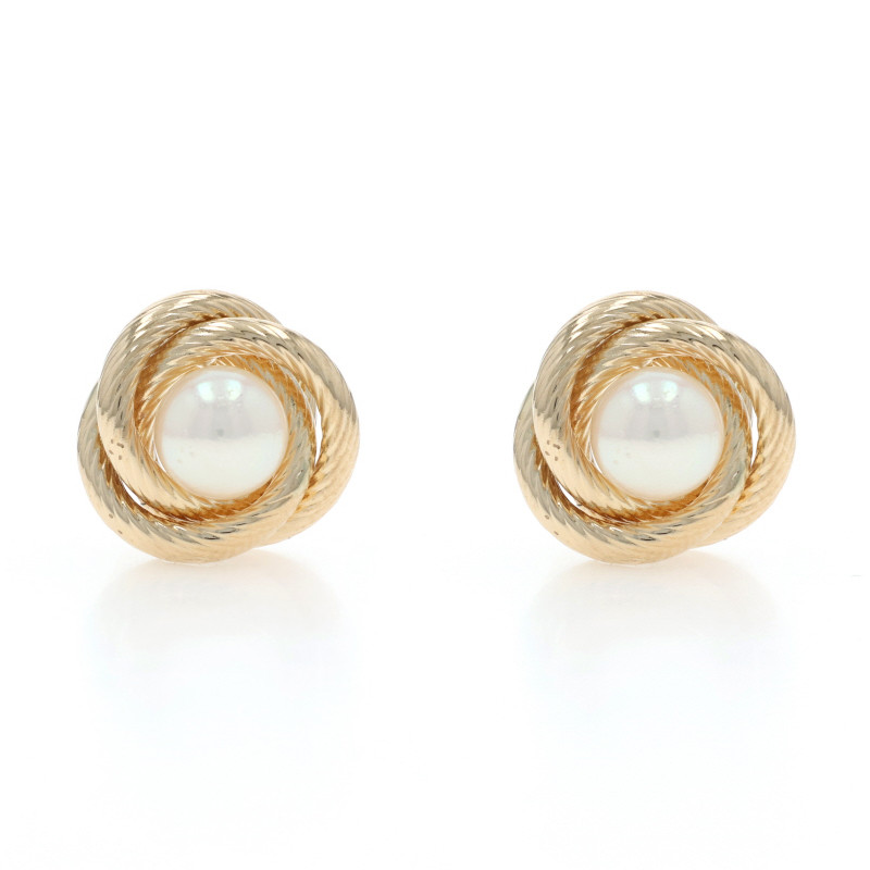 Yellow Gold Akoya Pearl Triple Circle Stud Earrings - 14k Pierced