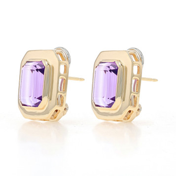 Yellow Gold Amethyst Dangle Earrings - 14k Emerald 3.20ctw Pierced