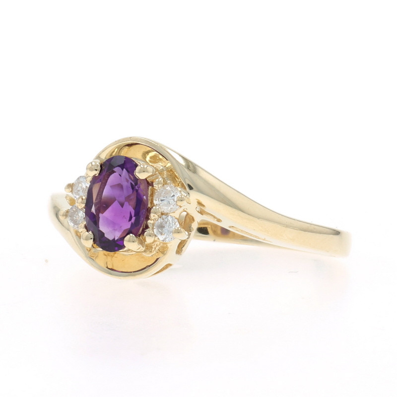 Yellow Gold Amethyst Diamond Bypass Ring - 10k Oval .40ctw