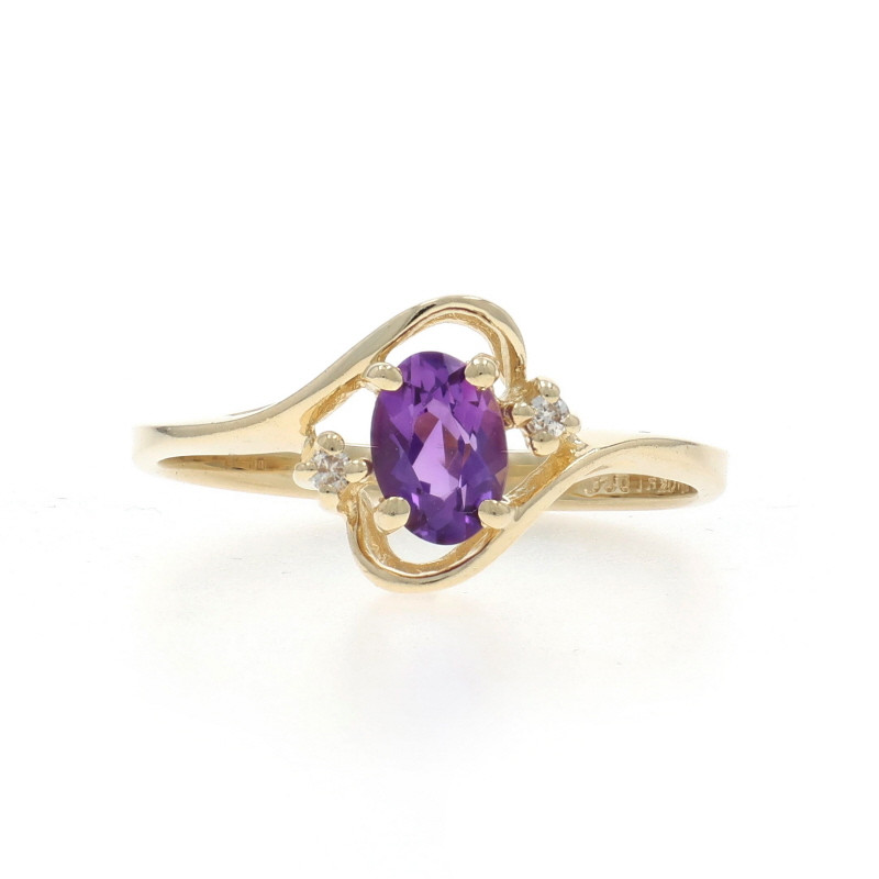 Yellow Gold Amethyst Diamond Bypass Ring - 10k Oval .47ctw