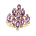 Yellow Gold Amethyst Diamond Cluster Cocktail Ring - 14k Oval 2.12ctw