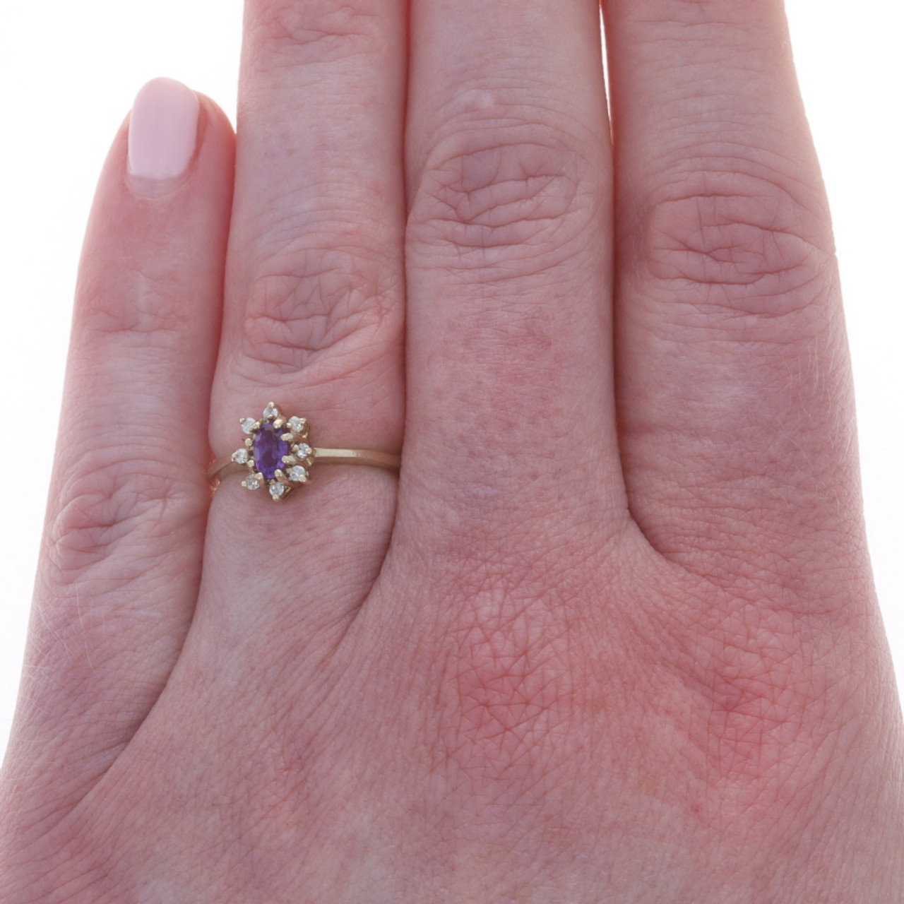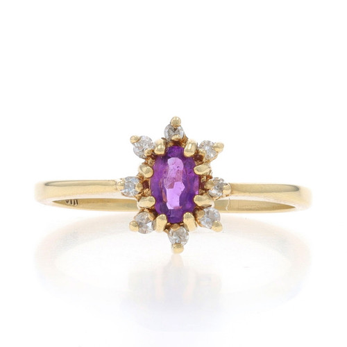 Yellow Gold Amethyst Diamond Halo Ring - 10k Oval .31ctw Floral