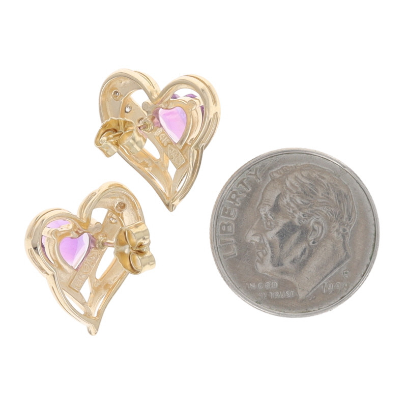 Yellow Gold Amethyst Diamond Heart Stud Earrings - 14k 1.06ctw Love Pierced