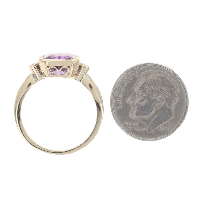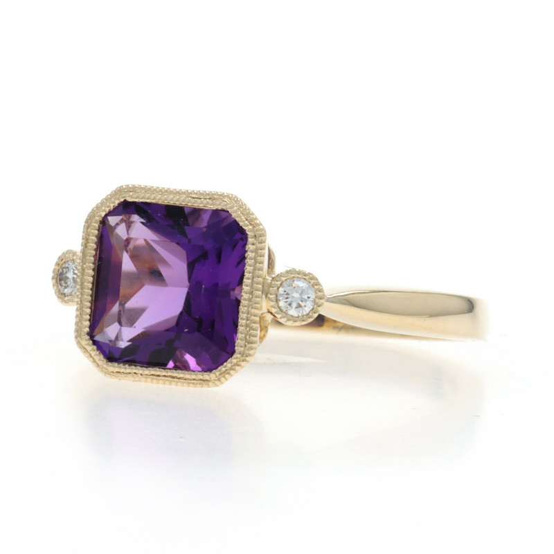 Yellow Gold Amethyst Diamond Ring - 14k Asscher Brilliant 1.95 Milgrain