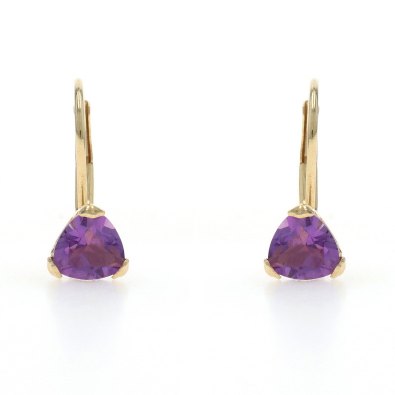 Yellow Gold Amethyst Drop Earrings - 14k Trillion Pierced