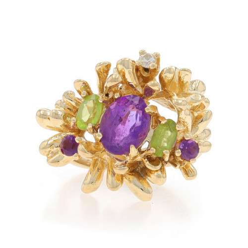 Yellow Gold Amethyst Peridot Diamond Cocktail Ring - 14k Oval Round 1.79ctw