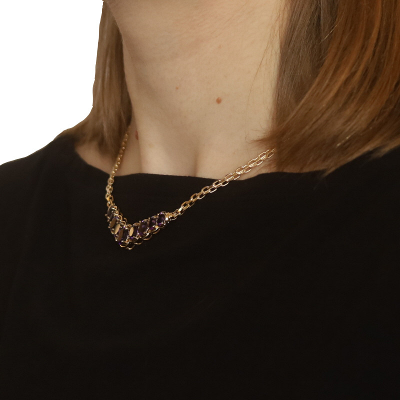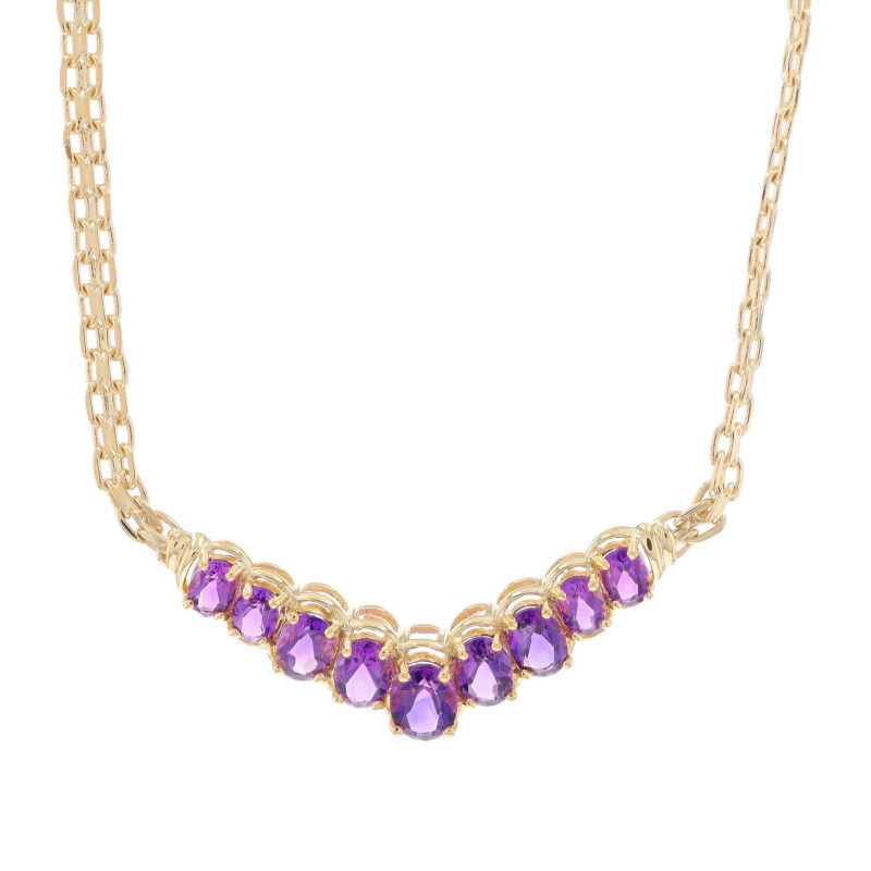 Yellow Gold Amethyst V Bar Necklace 16 1/2" - 14k Oval 6.45ctw