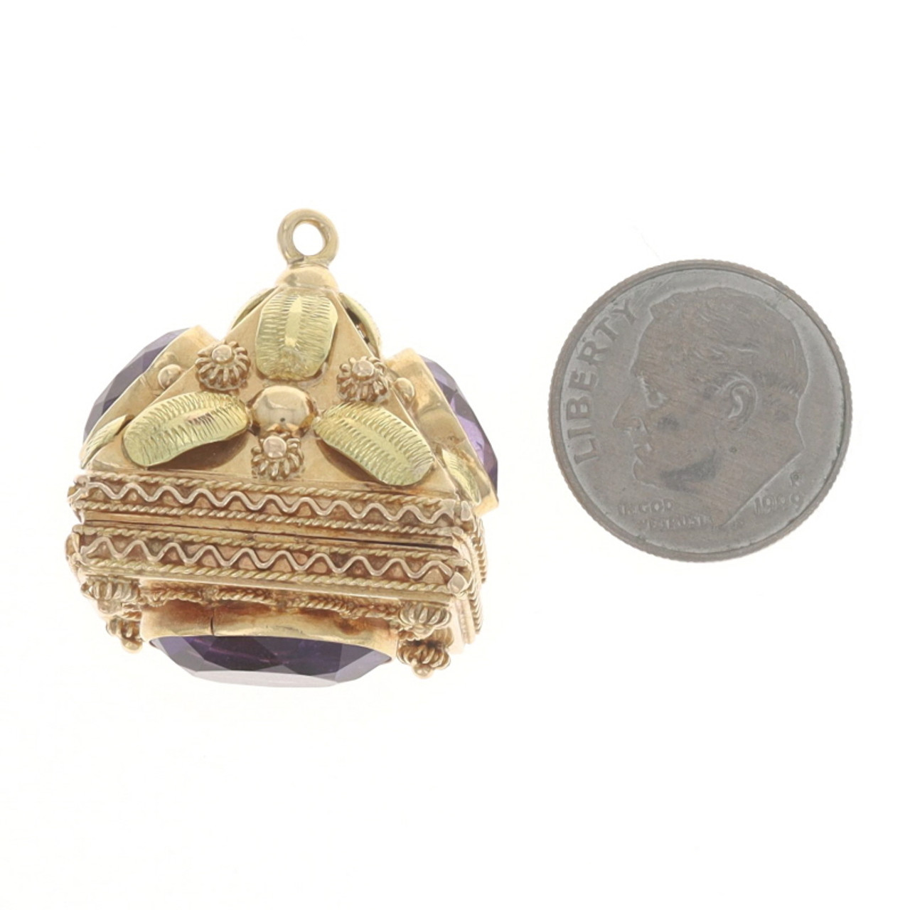 Yellow Gold Amethyst Vintage Floral Locket Charm 18k Oval 11.30ctw Opens