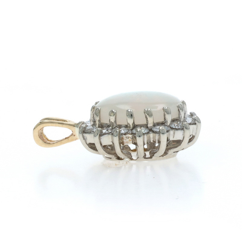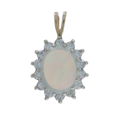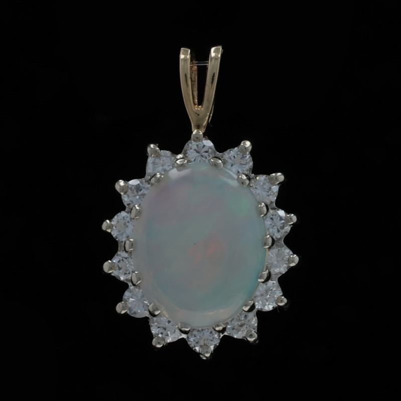 Yellow Gold Australian Opal Diamond Halo Pendant - 14k Oval Cab 1.82ctw Floral