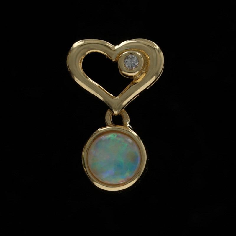 Yellow Gold Australian Opal Diamond Heart Pendant 18k Round Cabochon .31ctw Love