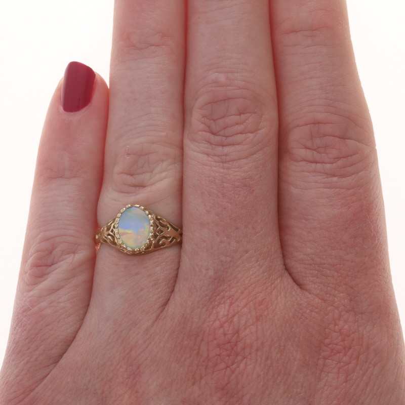 Yellow Gold Australian Opal Solitaire Ring - 10k Oval Cabochon .80ct