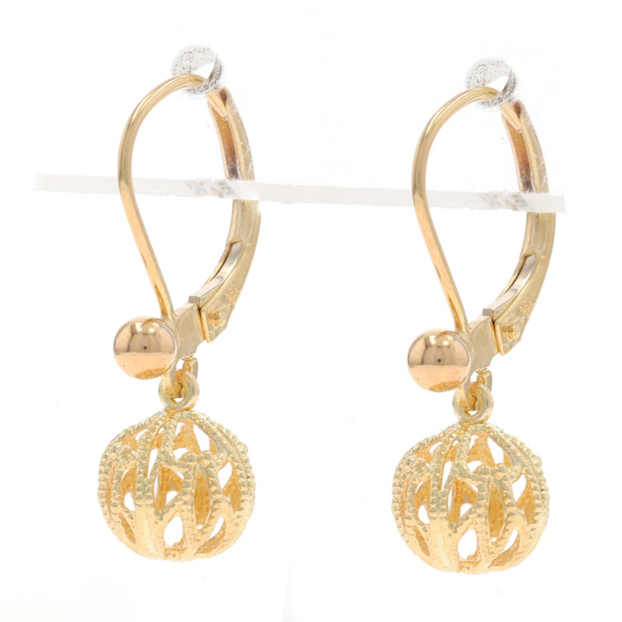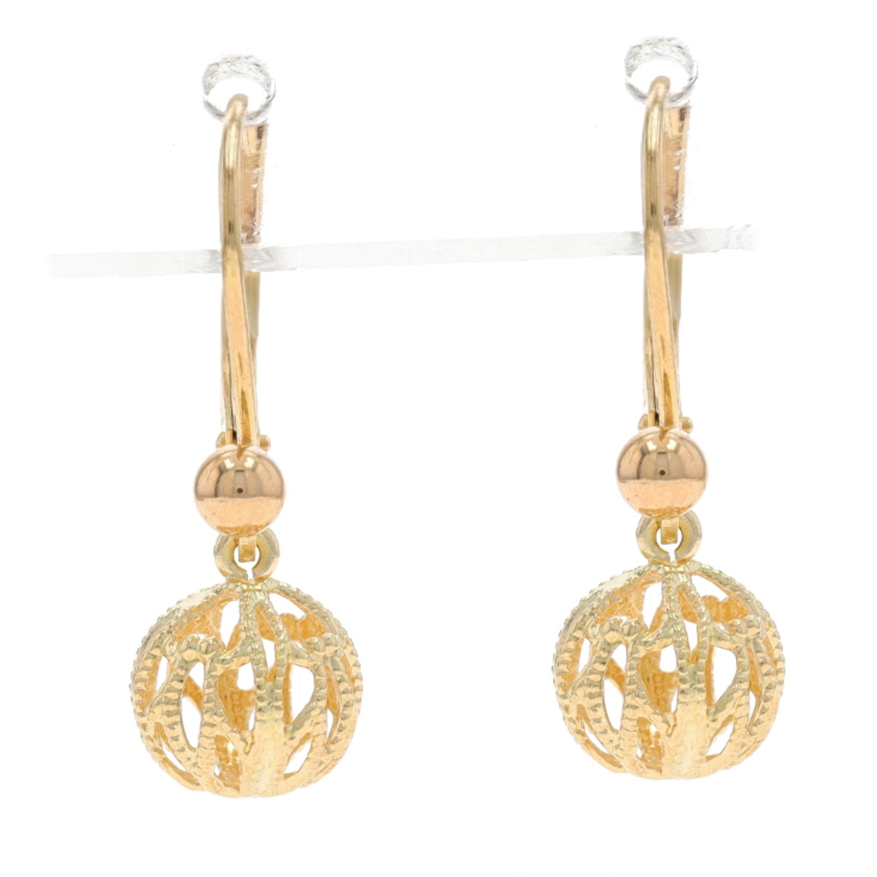 Yellow Gold Ball Dangle Earrings 14k Ornament Pierced