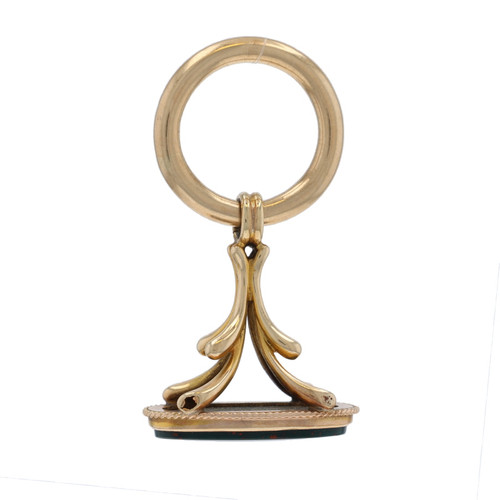 Yellow Gold Bloodstone Victorian Watch Fob Pendant - 14k Oval Antique