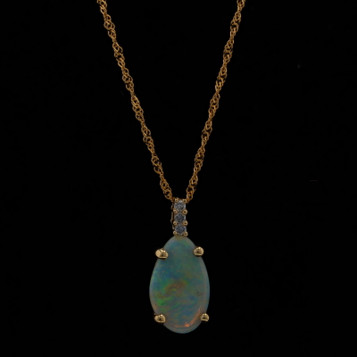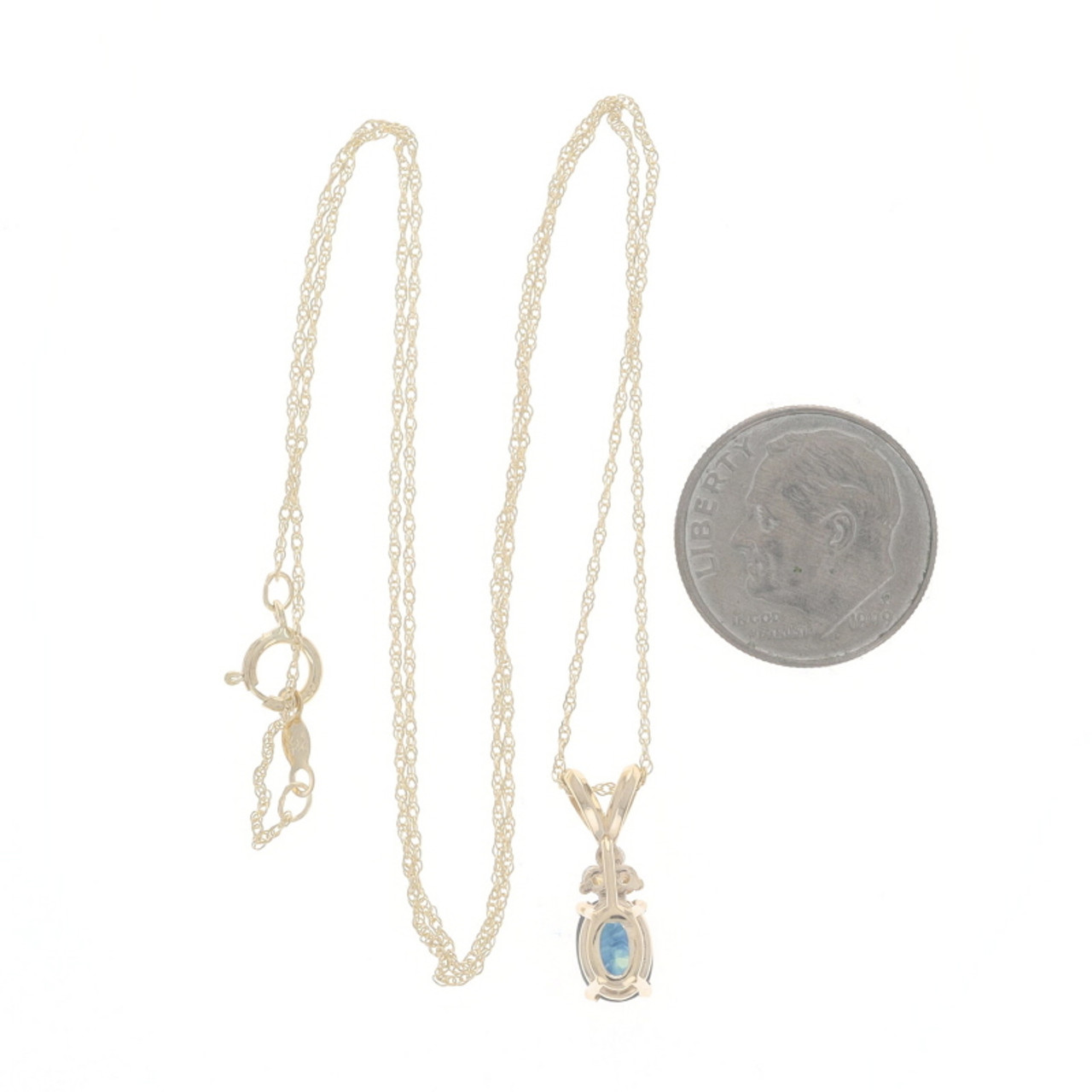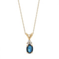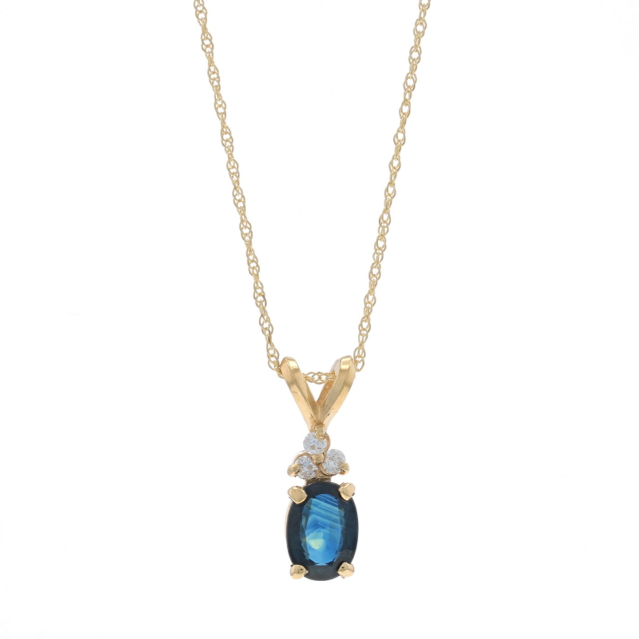 Yellow Gold Blue Sapphire Diamond Pendant Necklace 18 1/4" - 14k Oval .86ctw