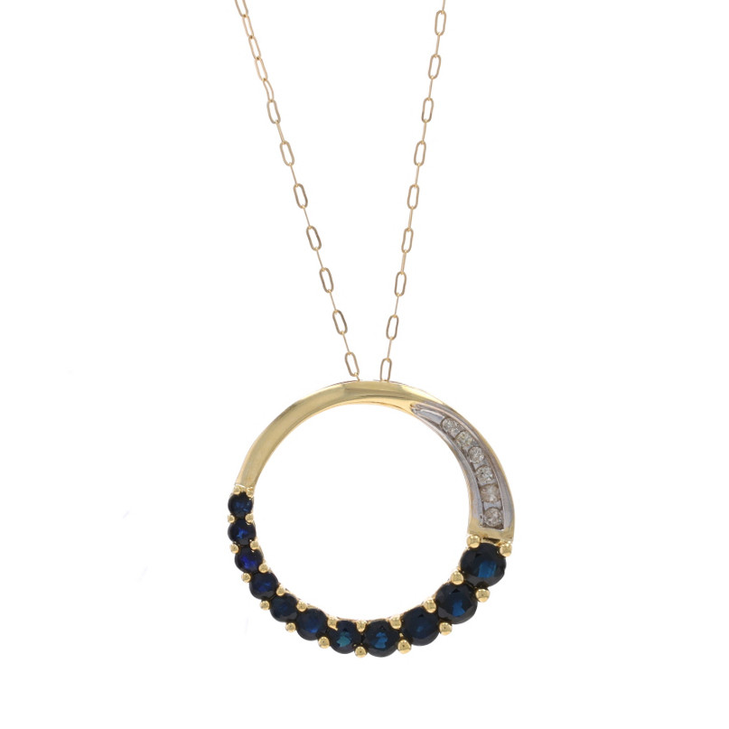 Yellow Gold Blue Sapphire Pendant Necklace 16" - 10k Round Love Graduated