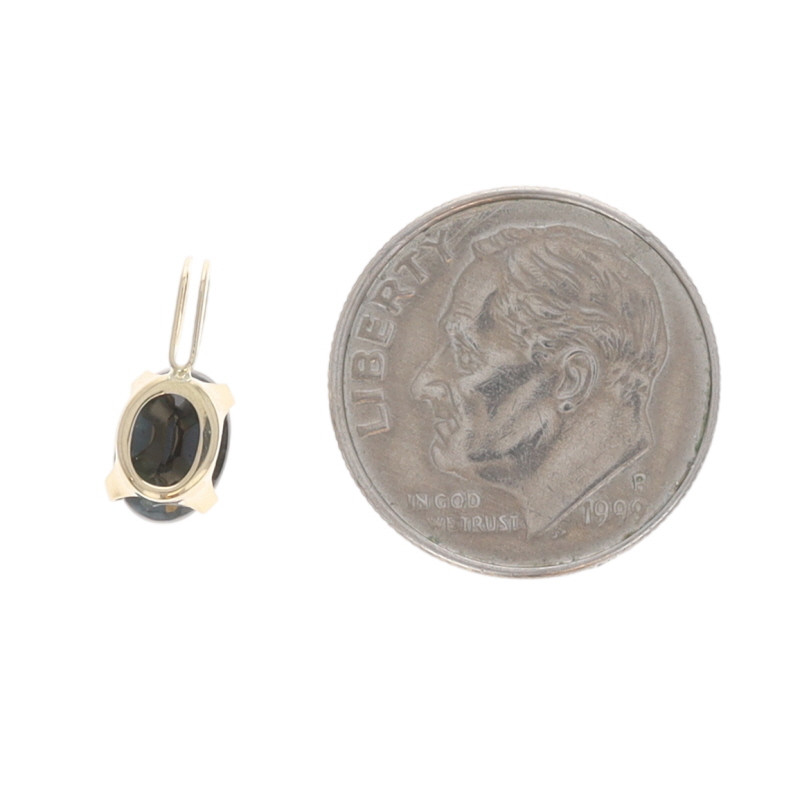 Yellow Gold Blue Sapphire Solitaire Pendant - 14k Oval .87ct
