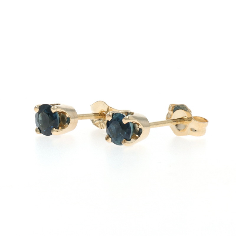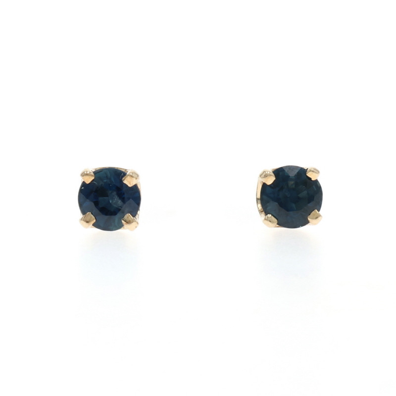 Yellow Gold Blue Sapphire Stud Earrings - 14k Round .48ctw Pierced