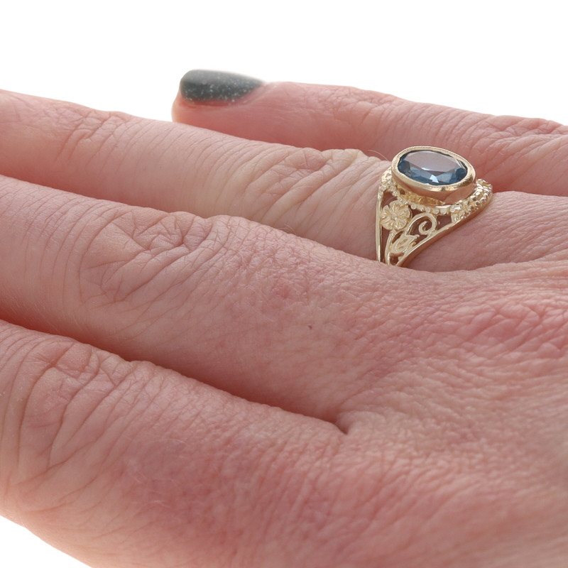 Yellow Gold Blue Topaz Cocktail Solitaire Ring - 10k Oval 1.40ct
