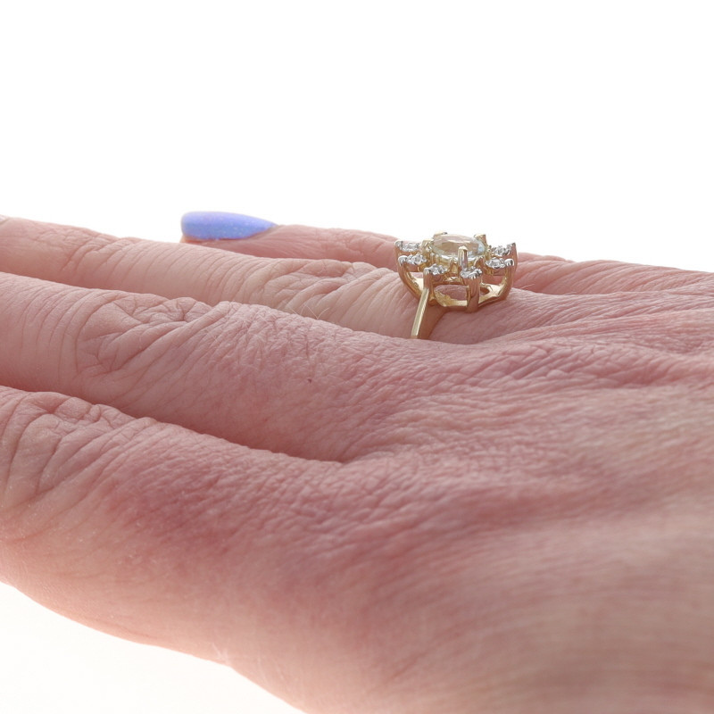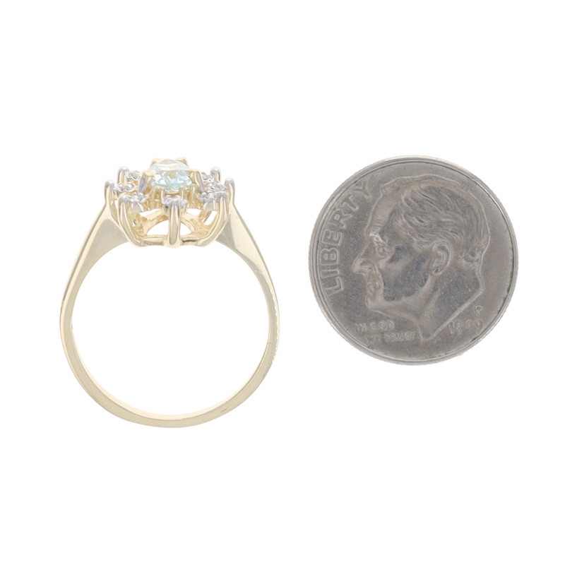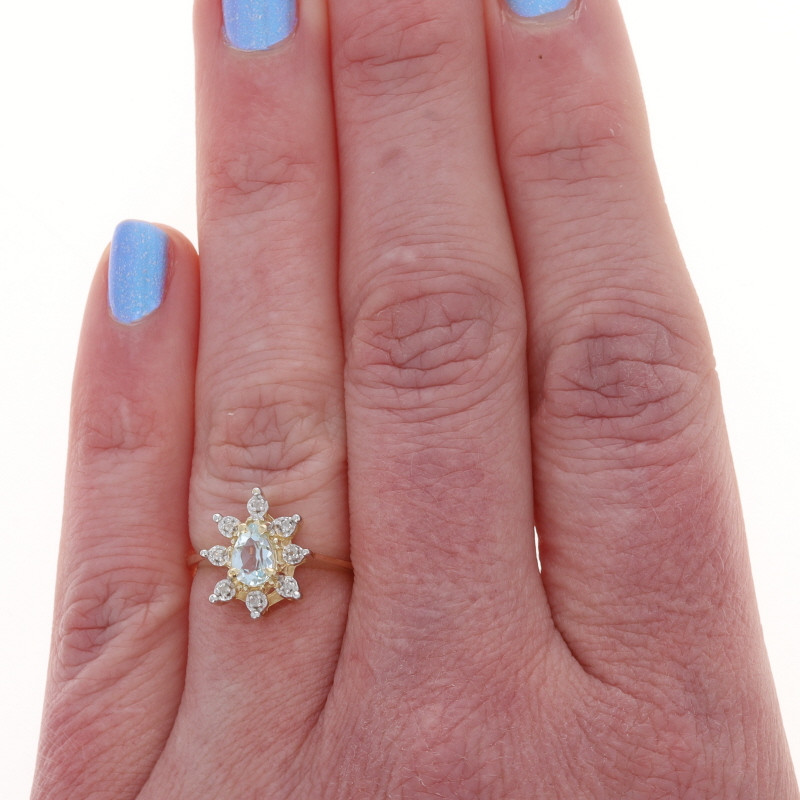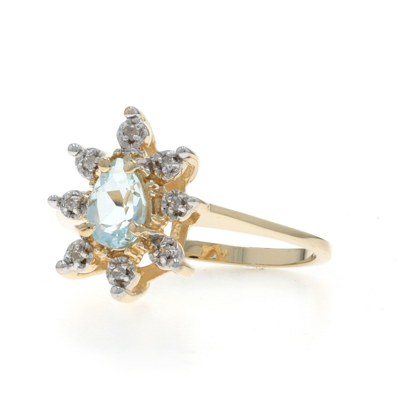 Yellow Gold Blue Topaz Diamond Halo Ring - 10k Pear .55ctw Floral
