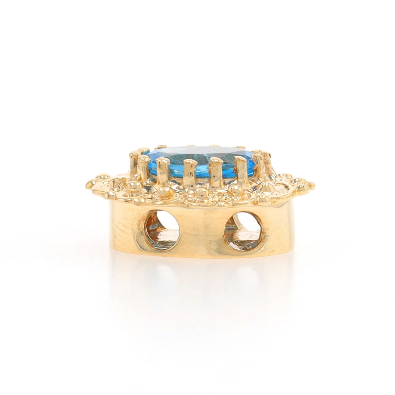 Yellow Gold Blue Topaz Solitaire Slide Charm - 14k Oval