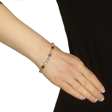 Yellow Gold Blue Topaz Tennis Bracelet 6 3/4" - 10k Oval 13.11ctw