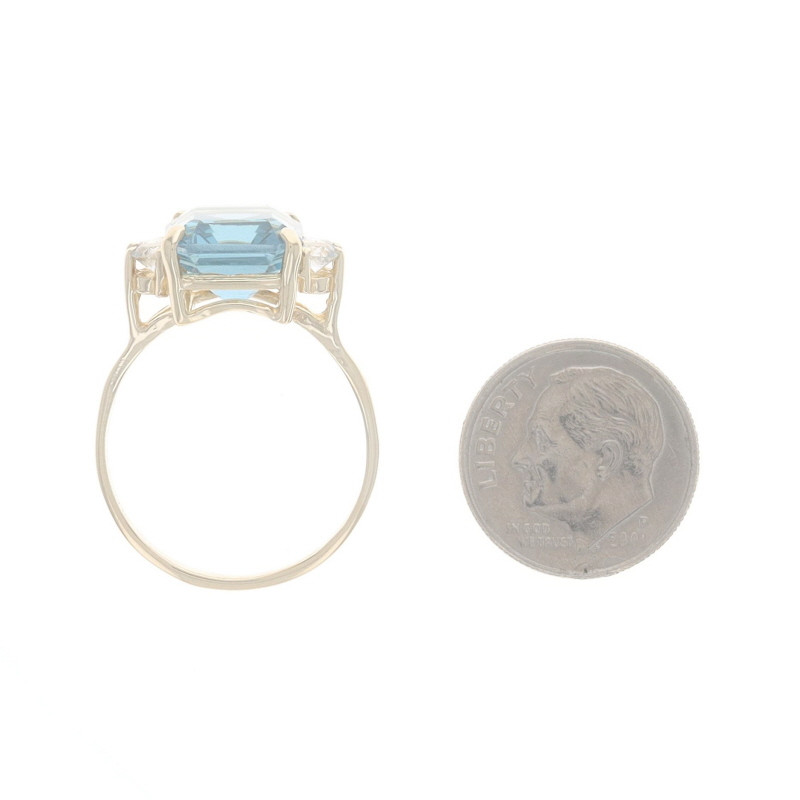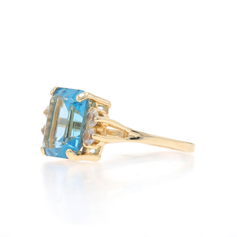Yellow Gold Blue Topaz & White Topaz Ring - 14k Emerald Cut 7.81ctw