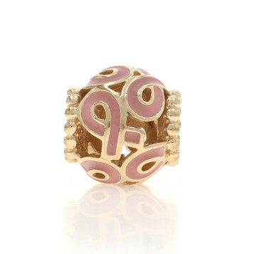 Yellow Gold Breast Cancer Awareness Charm - 14k Pink Enamel Hope Bead