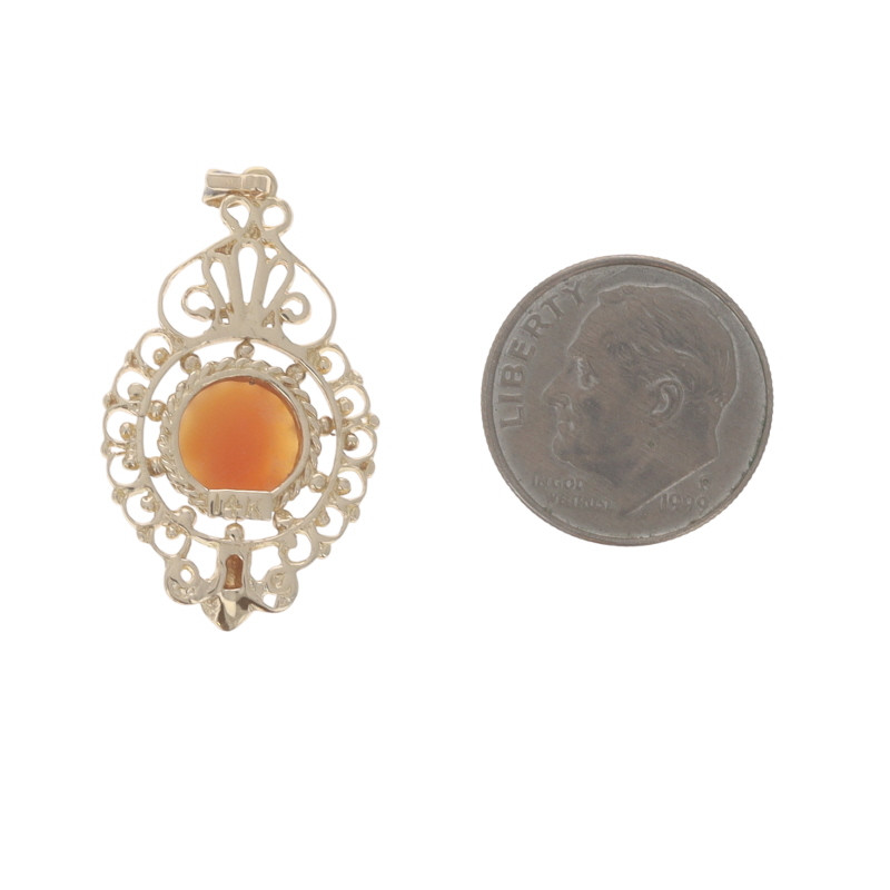 Yellow Gold Carved Shell Cameo Vintage Pendant 14k Silhouette