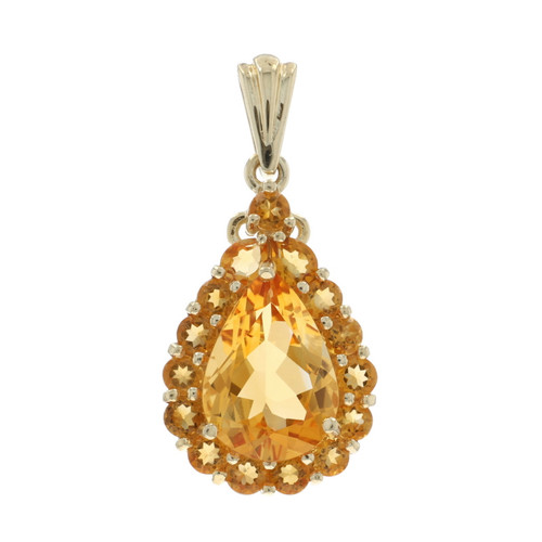 Yellow Gold Citrine Citrines Halo Pendant - 14k Pear 7.40ctw Floral