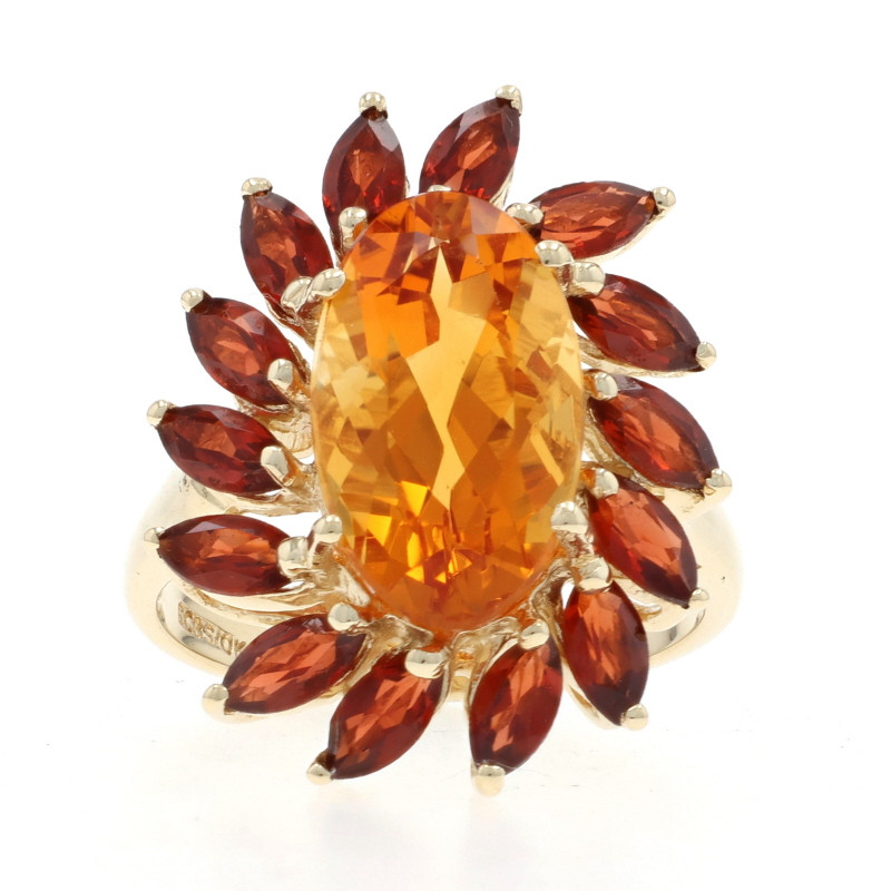 Yellow Gold Citrine Garnet Halo Ring - 10k Oval 5.88ctw Floral