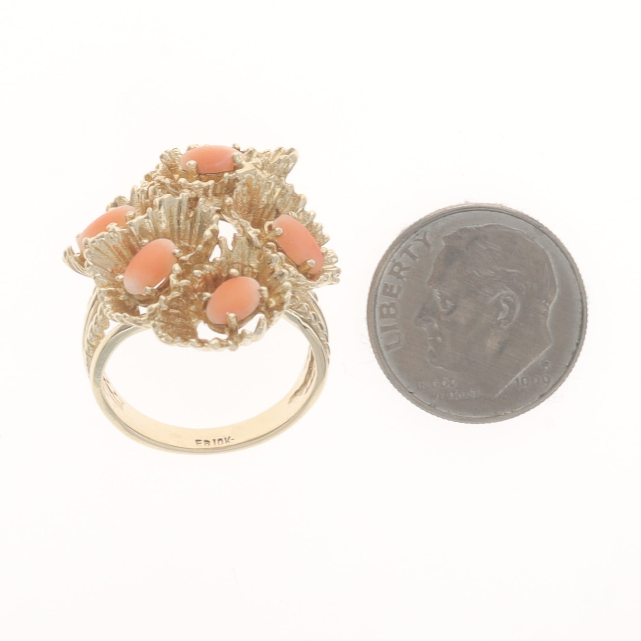 Yellow Gold Coral Vintage Cluster Cocktail Ring - 10k Oval Cabochon Floral