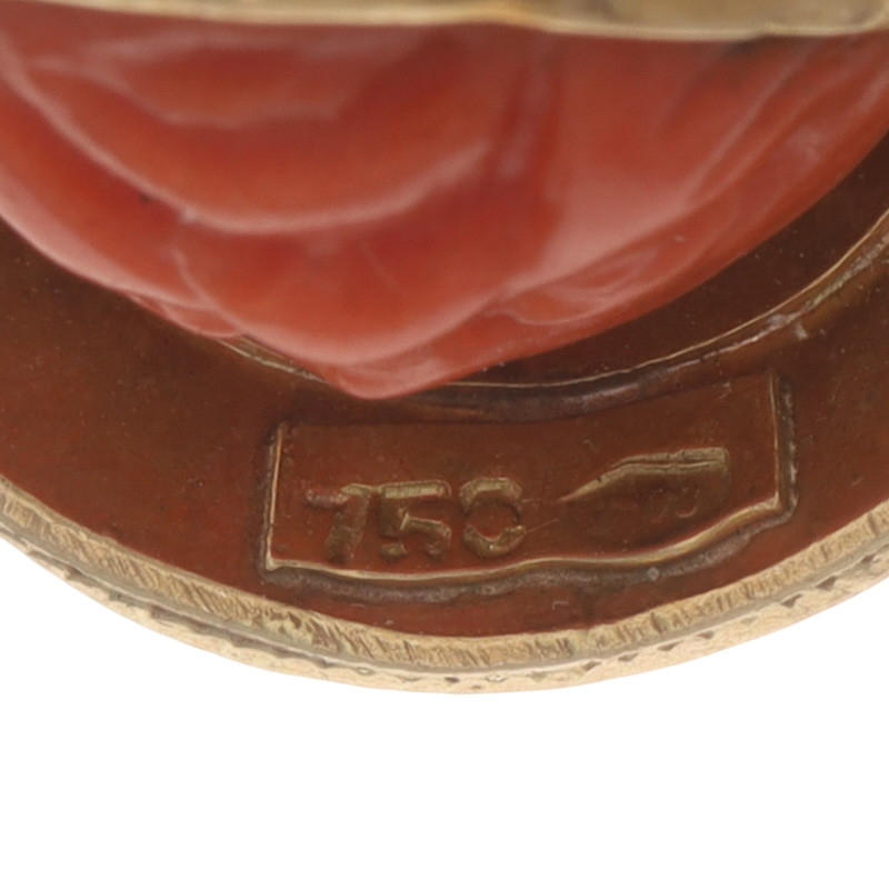 Yellow Gold Coral Vintage Reposed Face Double-Sided Pendant - 18k Carved
