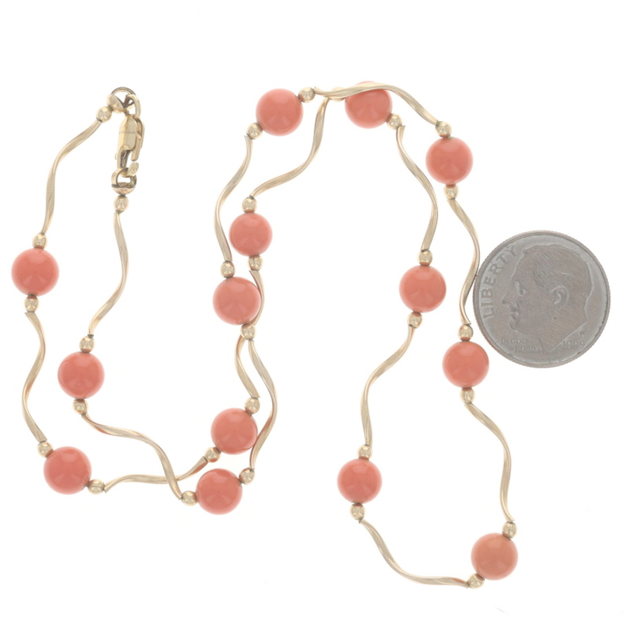 Yellow Gold Coral Wavy Dot Beaded Necklace 16 1/4" 14k Beads
