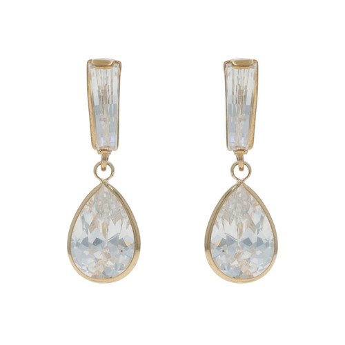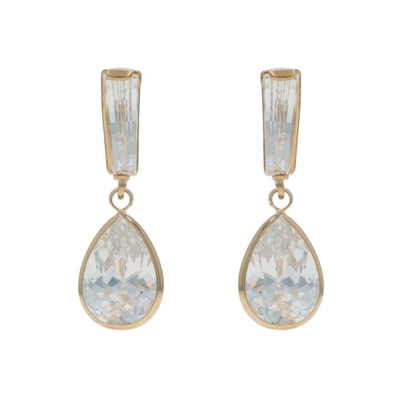 Yellow Gold Cubic Zirconia Dangle Earrings - 14k Pear 11.16ctw Pierced