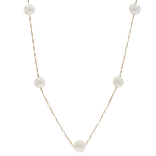 Yellow Gold Cultured Freshwater Pearls Station Necklace 18" 14k
