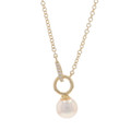 Yellow Gold Cultured Pearl Diamond Pendant Necklace 14k Adjustable