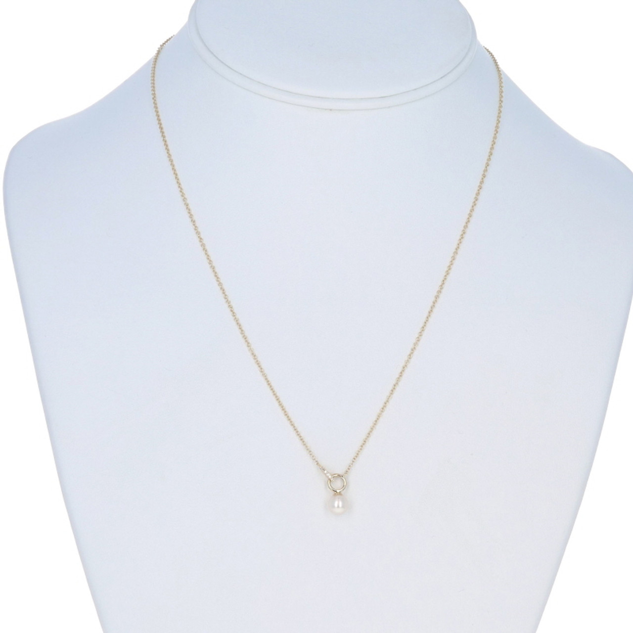 Yellow Gold Cultured Pearl Diamond Pendant Necklace 14k Adjustable