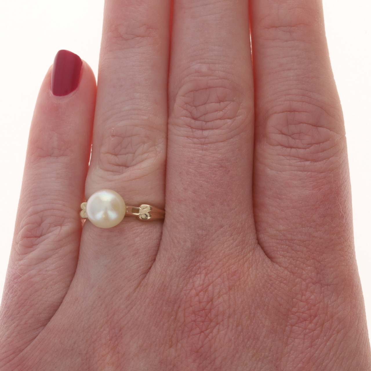 Yellow Gold Cultured Pearl Solitaire Ring 14k Scrollwork