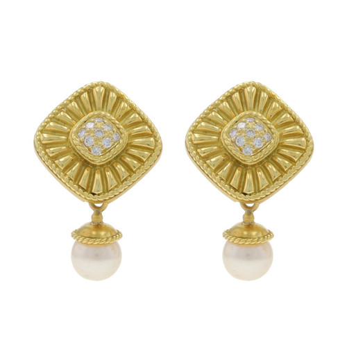 Yellow Gold Diamond Akoya Pearls Dangle Earrings 18k Round .27ctw Convertible