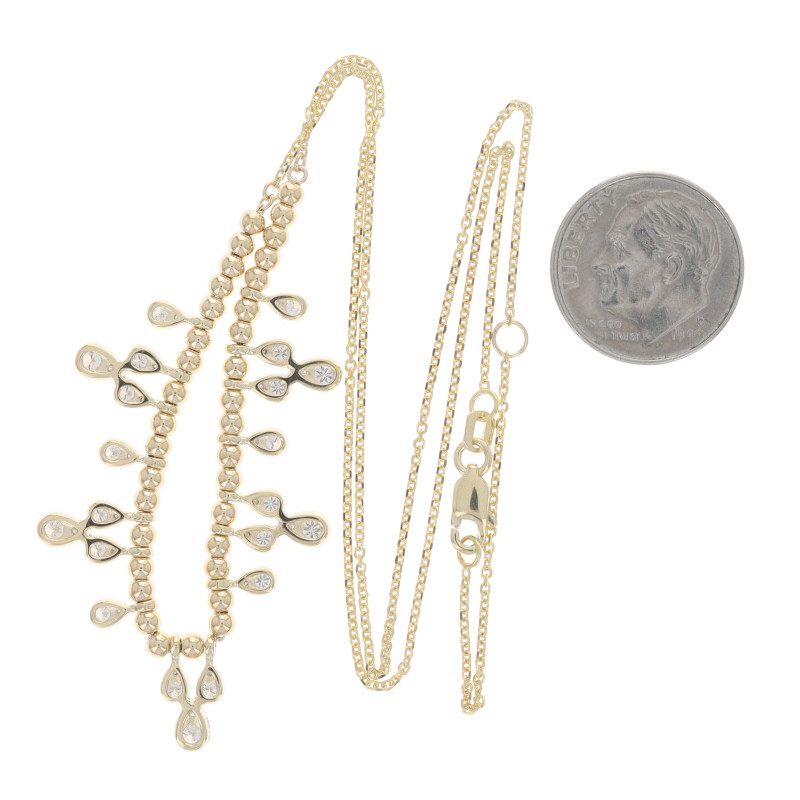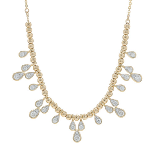 Yellow Gold Diamond Beaded Dangle Necklace 18" - 14k Round .85ctw Raindrops