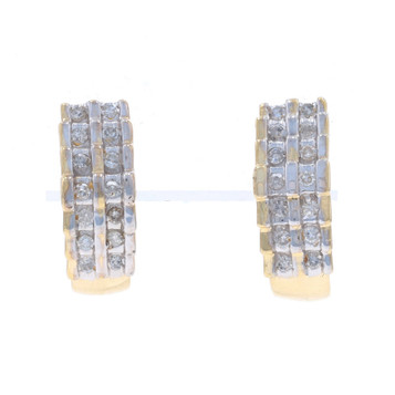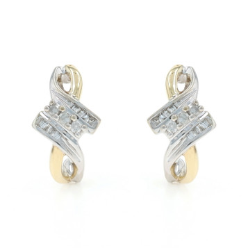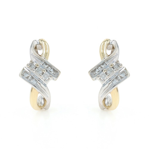 Yellow Gold Diamond Bypass J-Hook Earrings - 10k Round & Baguette .20ctw Pierced